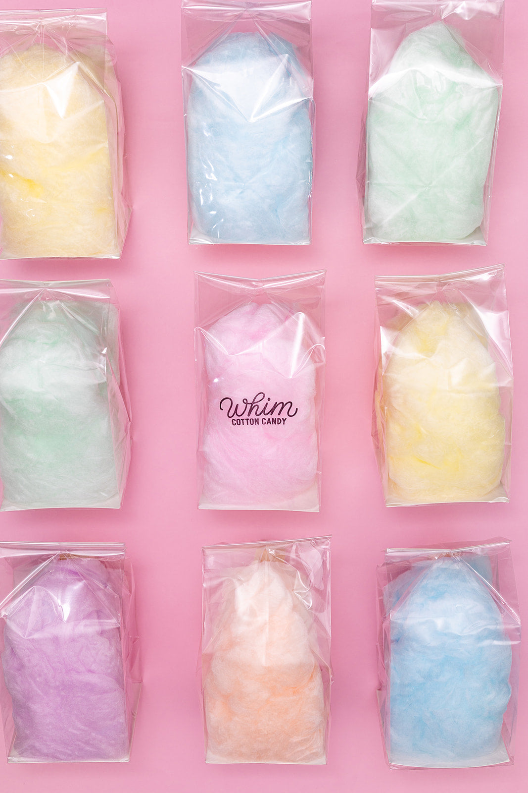 Perfect for any party, get together, or celebration, we offer an extensive variety of fully customizable packaged cotton candy options. From cotton candy cakes, to cotton candy push pops, to a literal wall packed with freshly spun sugary goodness, we have a sweet treat for everyone.